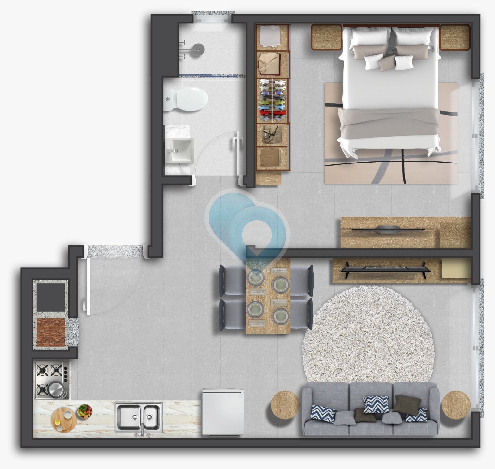 1 dormitório (1 suíte)