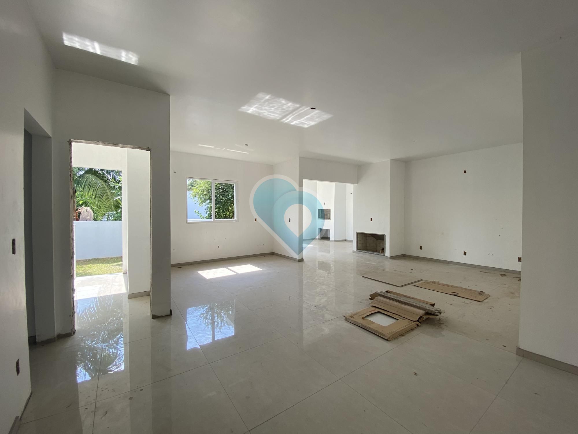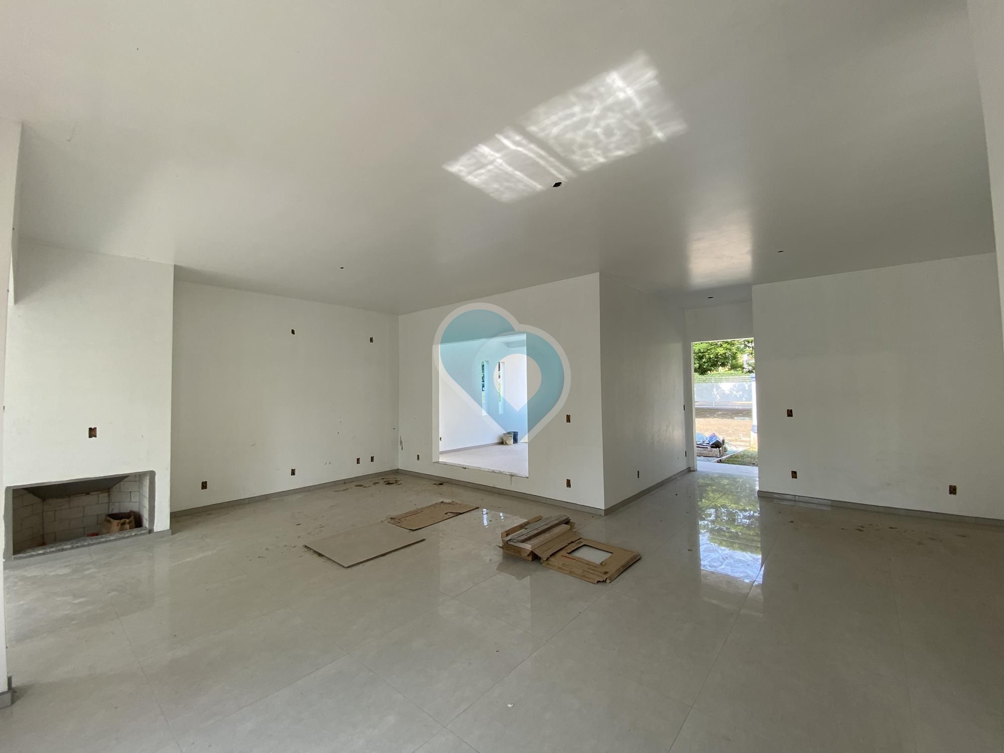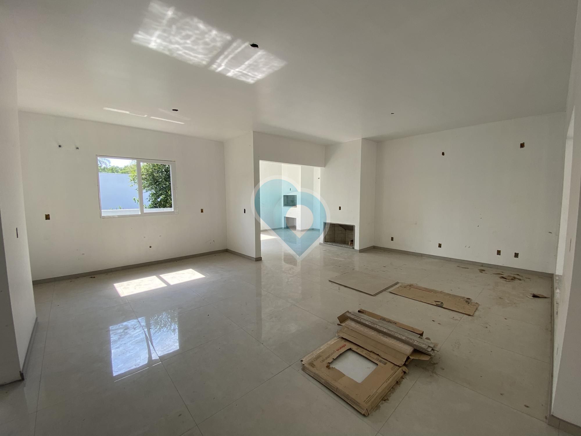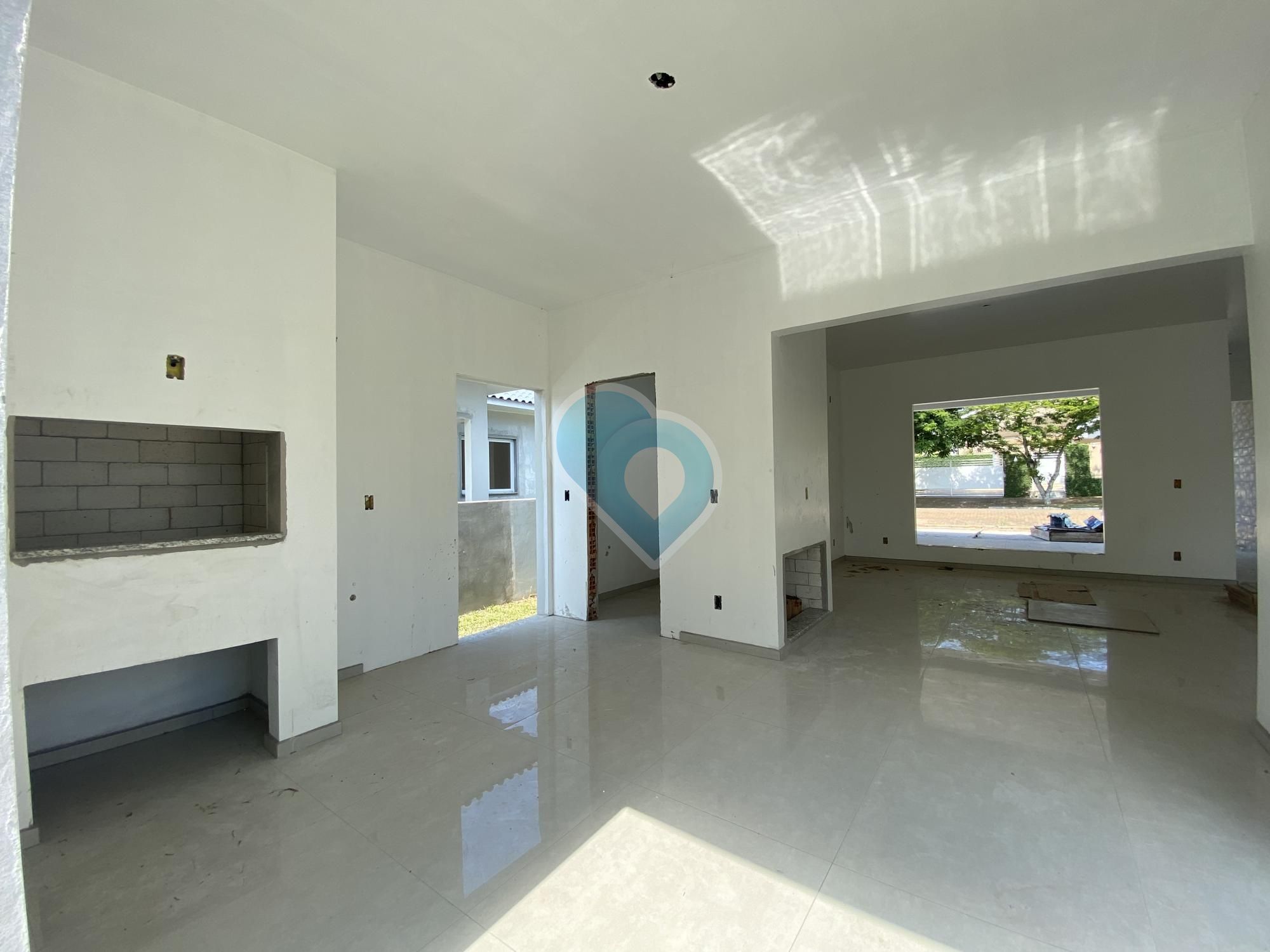 Alvenaria nova. Com 3 dormitórios, sendo 01 suíte, banheiro social, sala de jantar/estar com lareira e integrada a cozinha, área de serviço, área gourmet com churrasqueira e garagem para 02 carros lado a lado. Aberturas em alumínio, piso porcelanato.