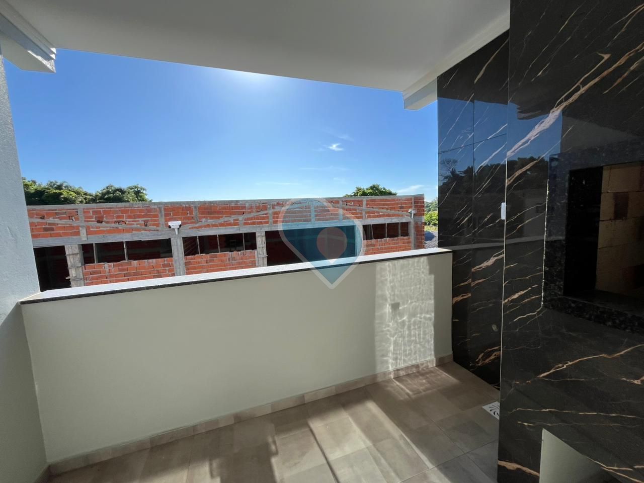 A sacada com churrasqueira e área de serviço, 01 vaga de garagem, posição solar com sol da tarde.