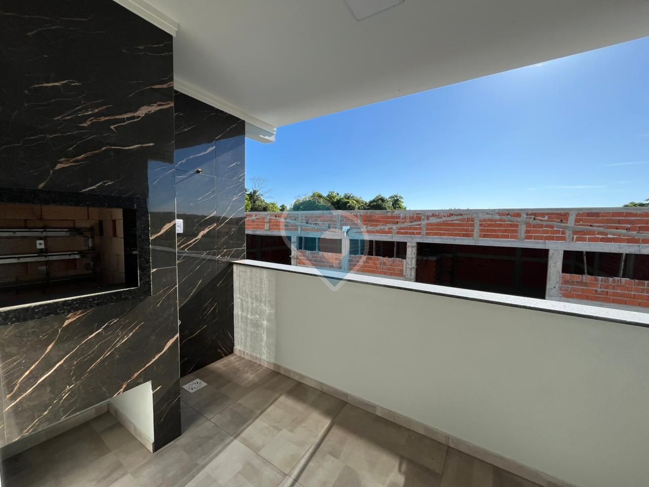 A sacada com churrasqueira e área de serviço, 01 vaga de garagem, posição solar com sol da tarde.